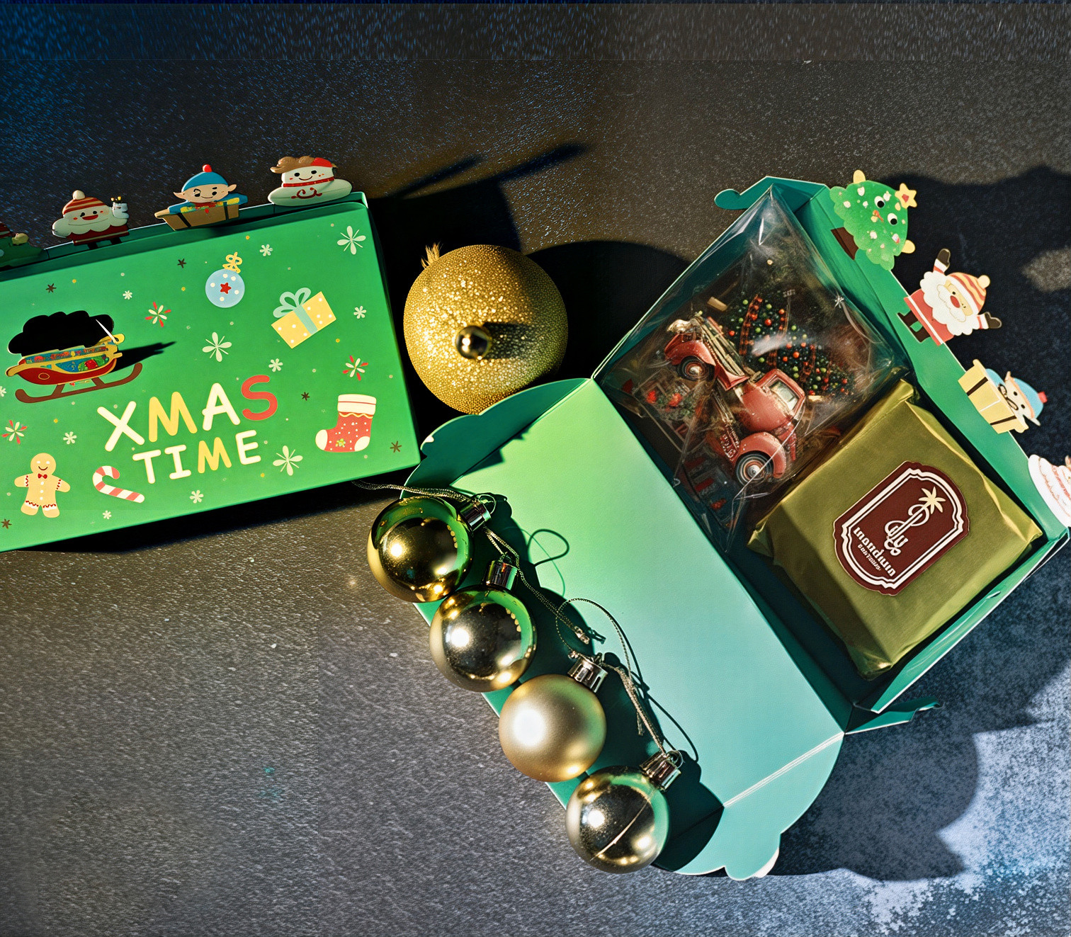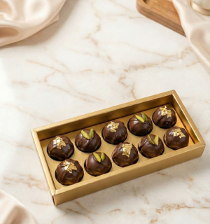 A perfect festive mix! Includes: • 1 Dubai Chocolate Truffle with Date • 1 Nut-Filled Date • 2 Chocolates (Your choice: White, Dark, or Milky) Price: 2 OMR Click to order