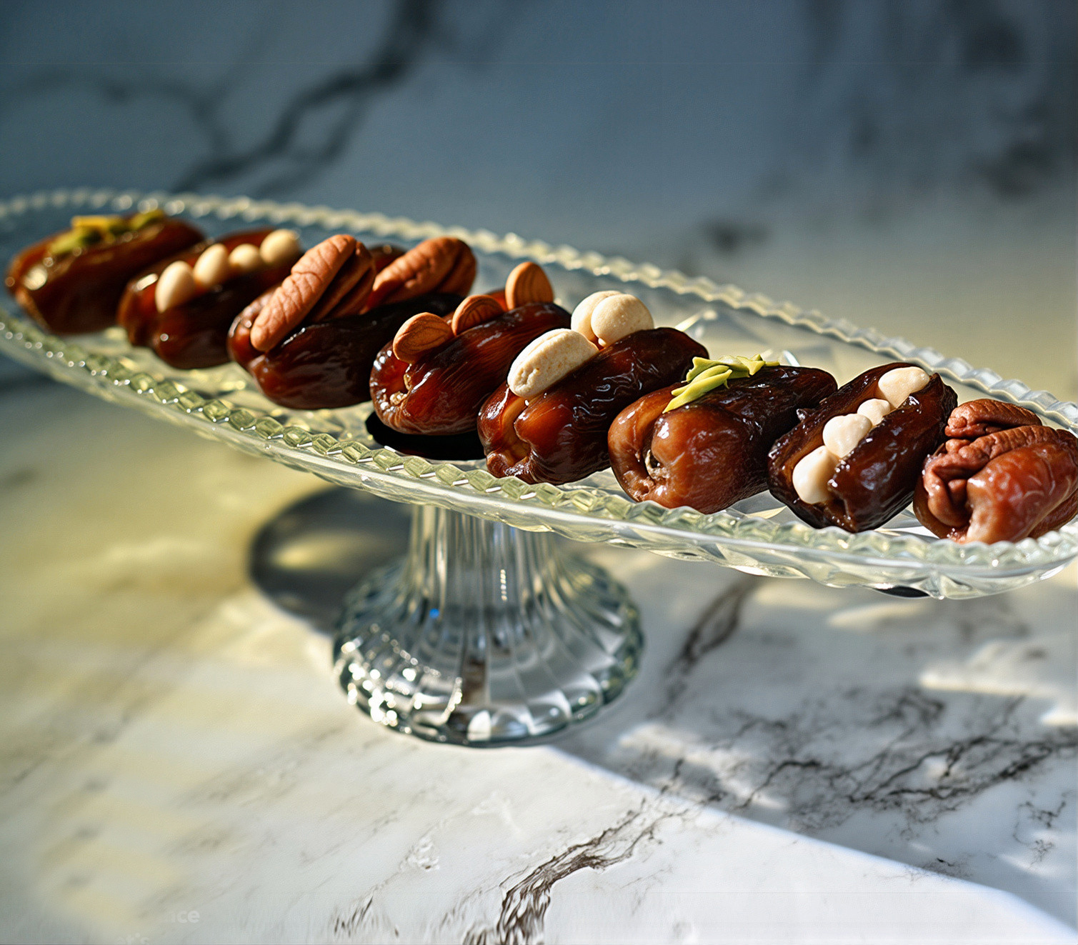 Pure elegance in a box. Enjoy our finest premium dates, generously filled with nuts. Price: 6 OMR Click to order